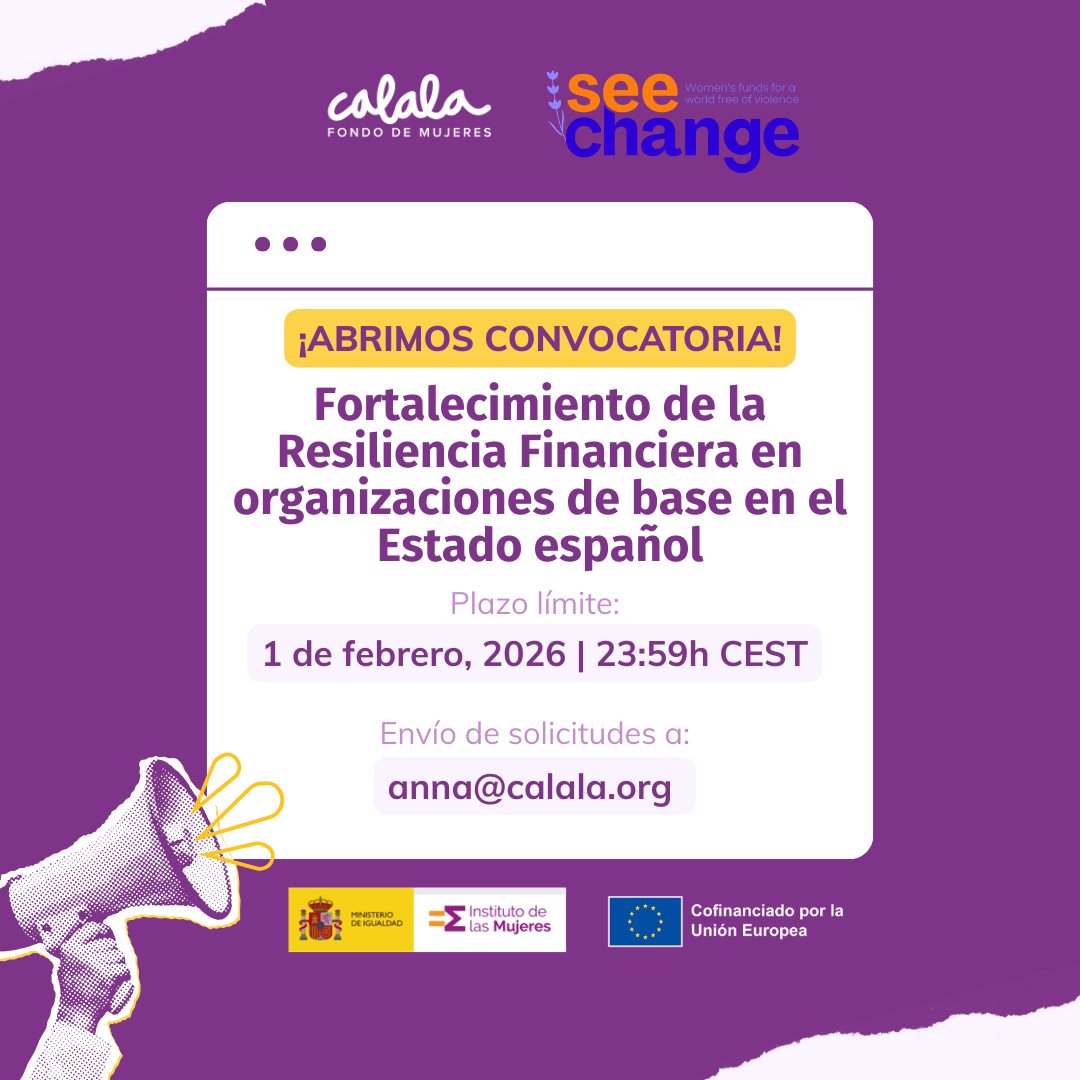 Together with Calala, several women's organisations in Spain, such as Metzineres, Other Time, La Comala Cooperative, Women Survivors, We are+ y LabCoop We are concerned about the impact of the COVID-19 crisis on women's and feminist organisations., as well as organisations, professionals and cooperatives working in the social and solidarity economy.